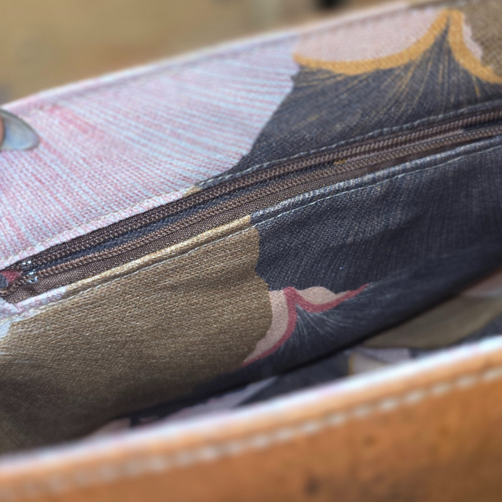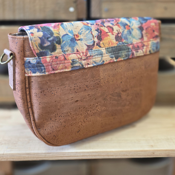 Le sac Iris est un accessoire à la fois végan et éco-responsable, parfait pour les personnes soucieuses de l'environnement et de la cause animale. Le rabat est fabriqué en liège imprimé, un matériau renouvelable, résistant à l'eau et facile à entretenir.