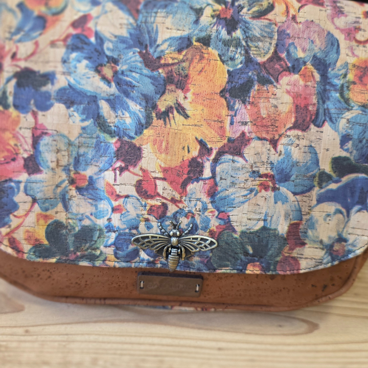 Sac Iris en Liège marron et fleurs colorées